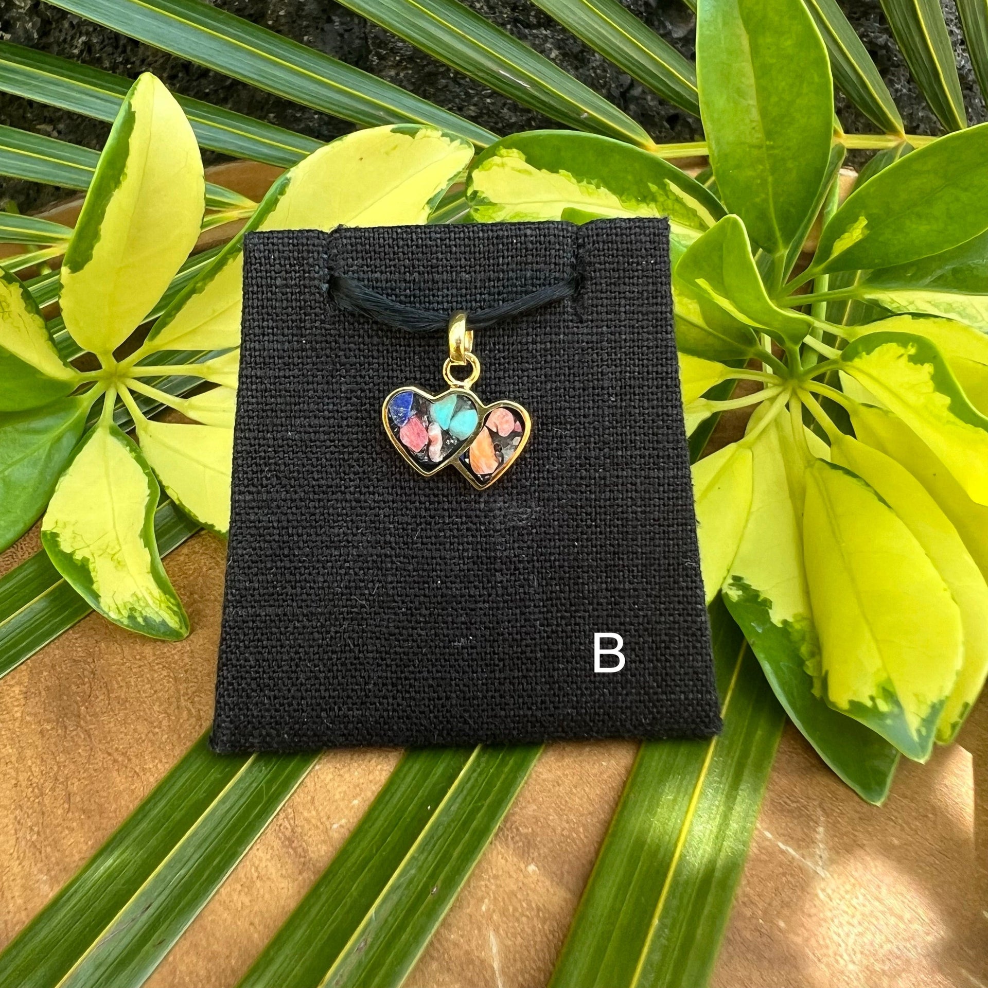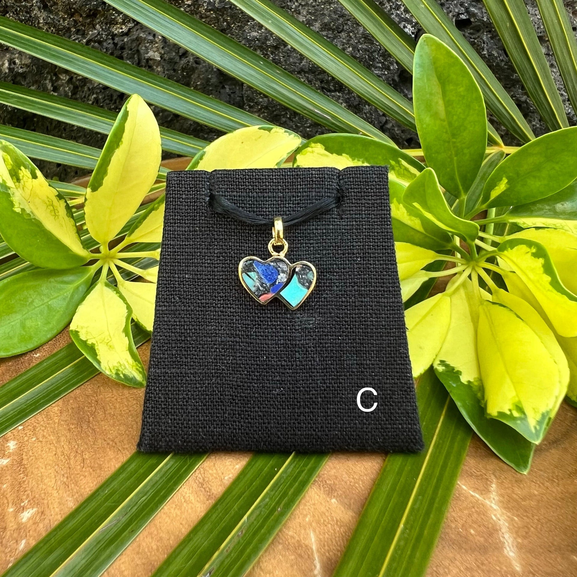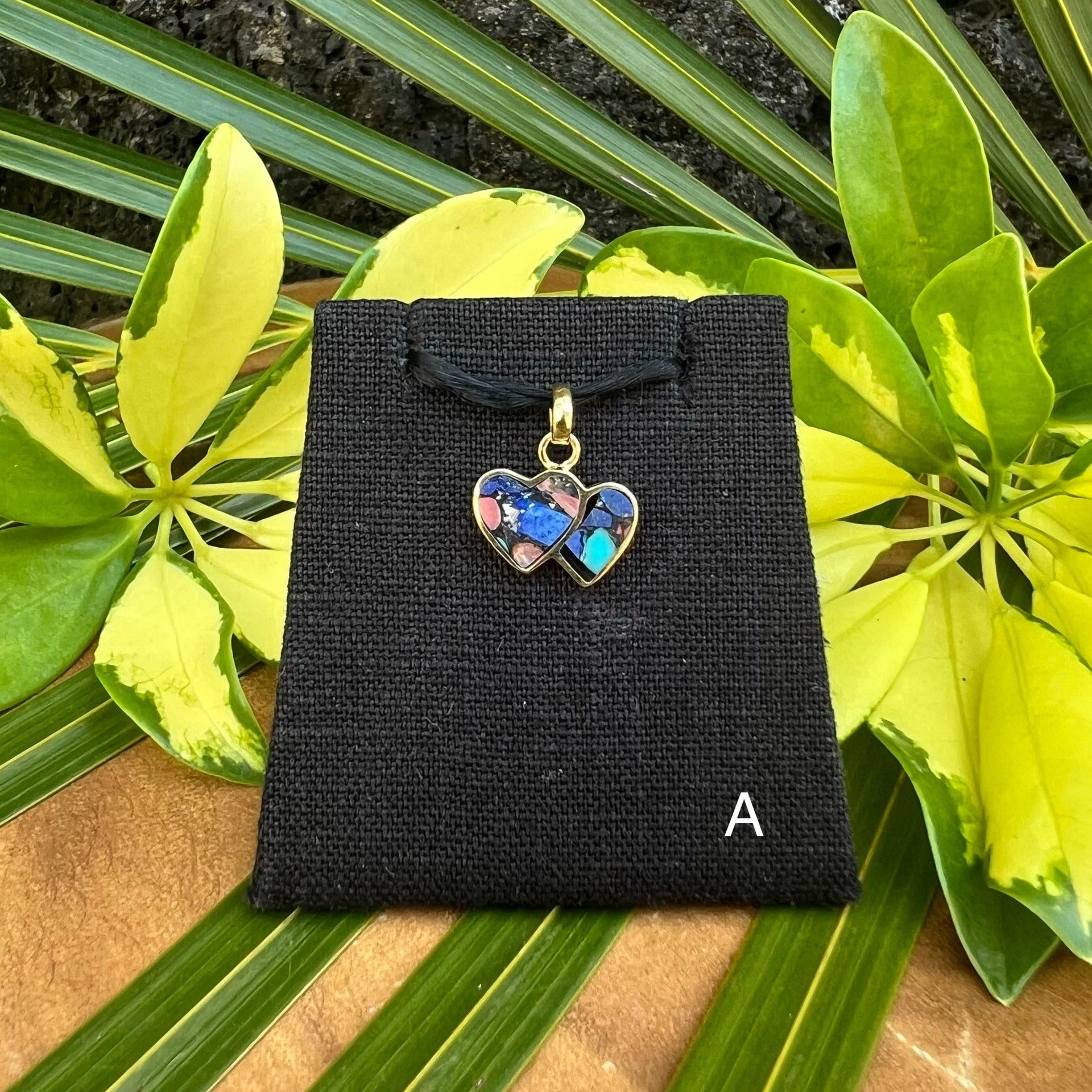 14kt Gold Plated Lālani Black Coral Composite Double Heart Pendant
