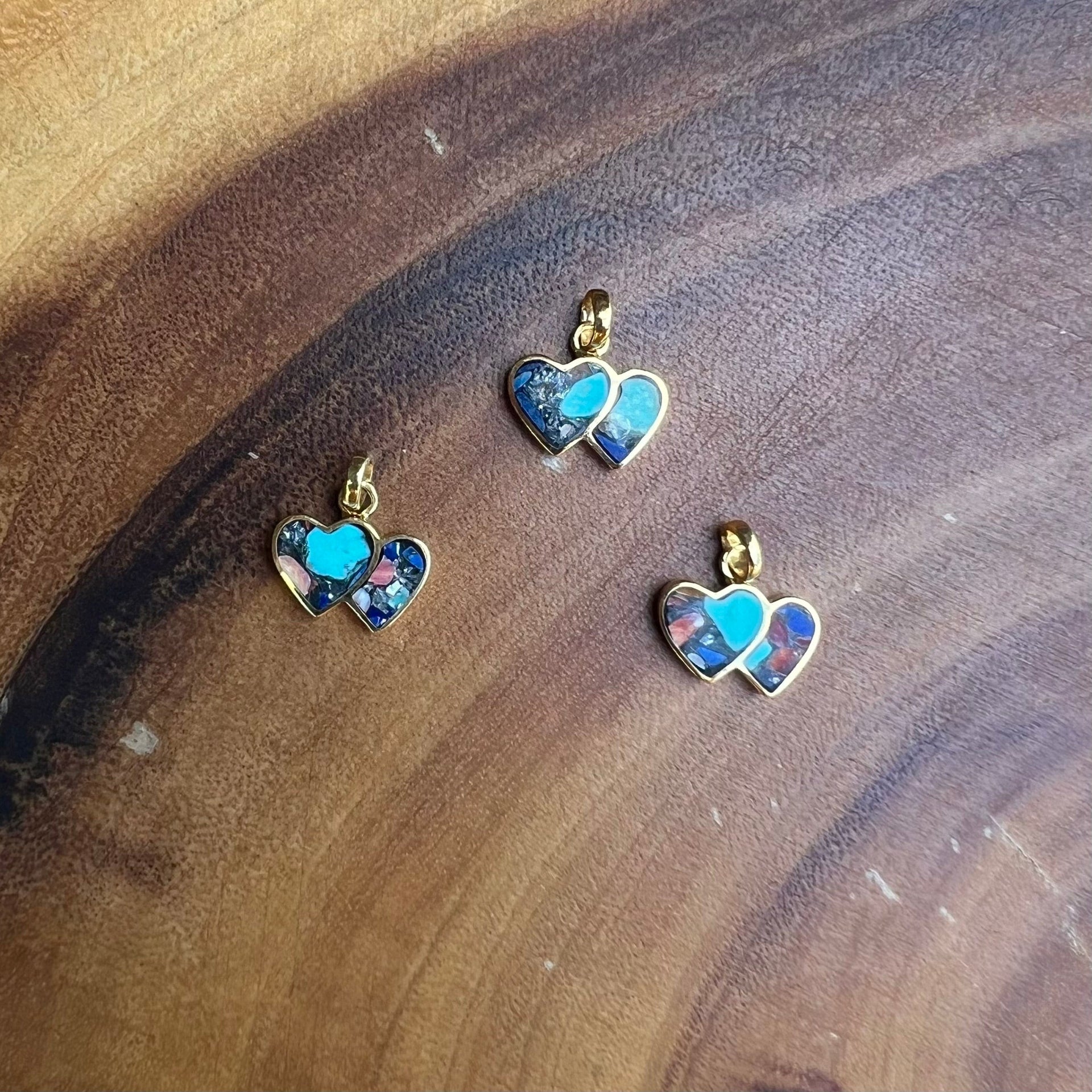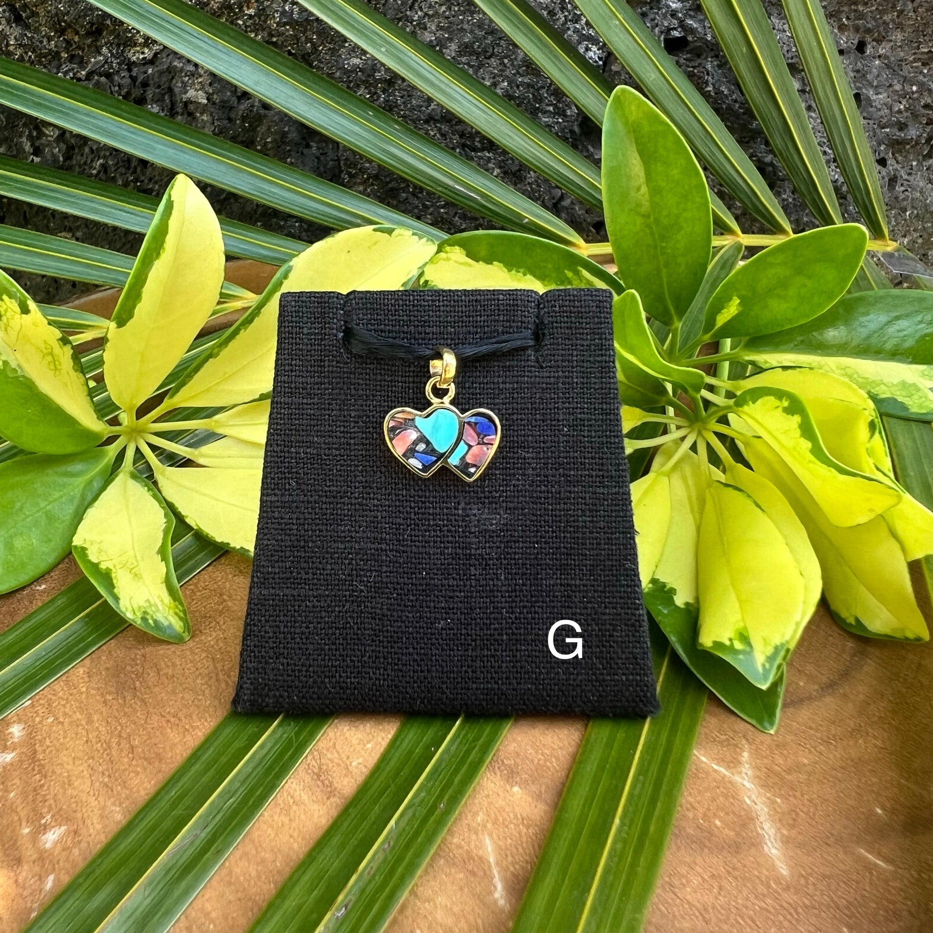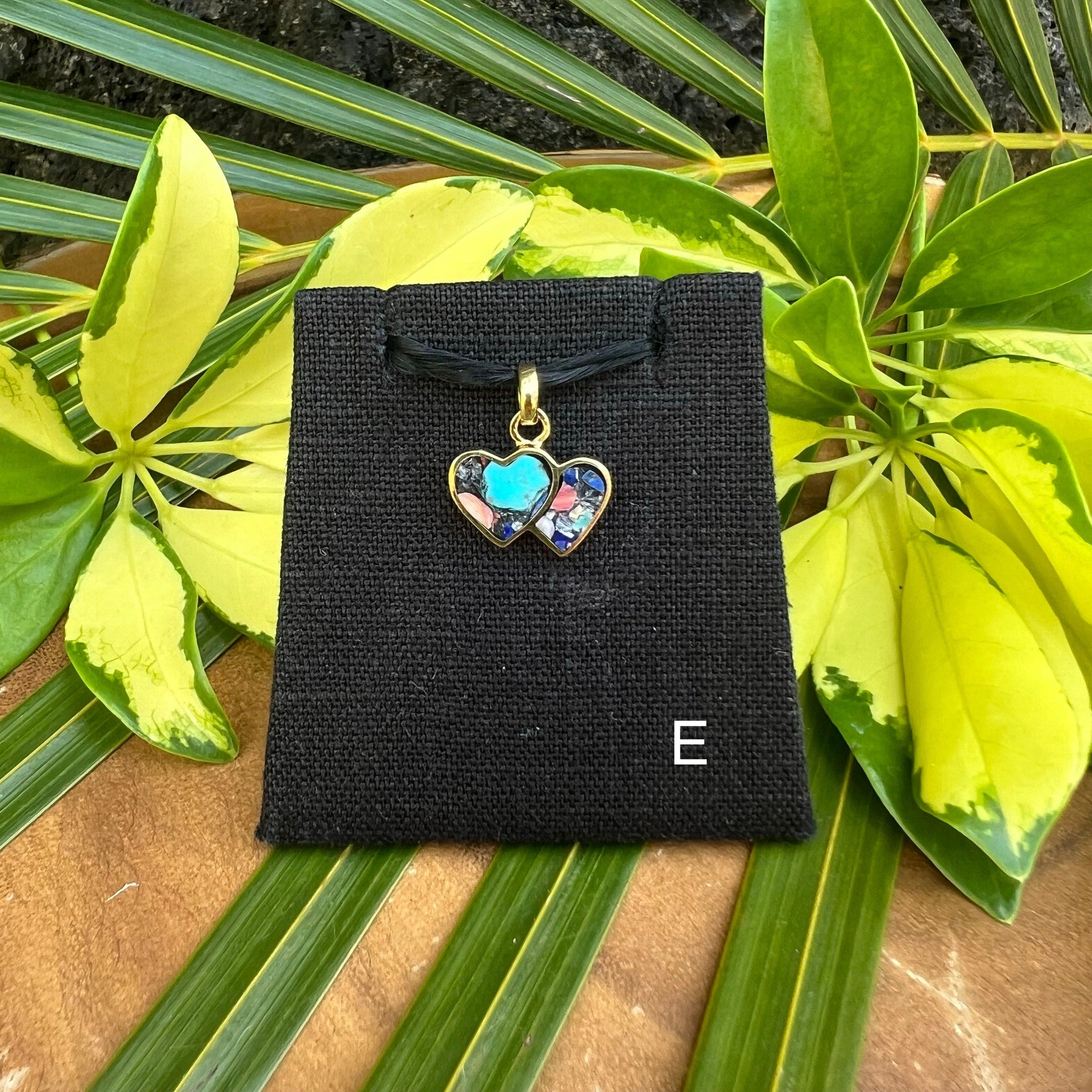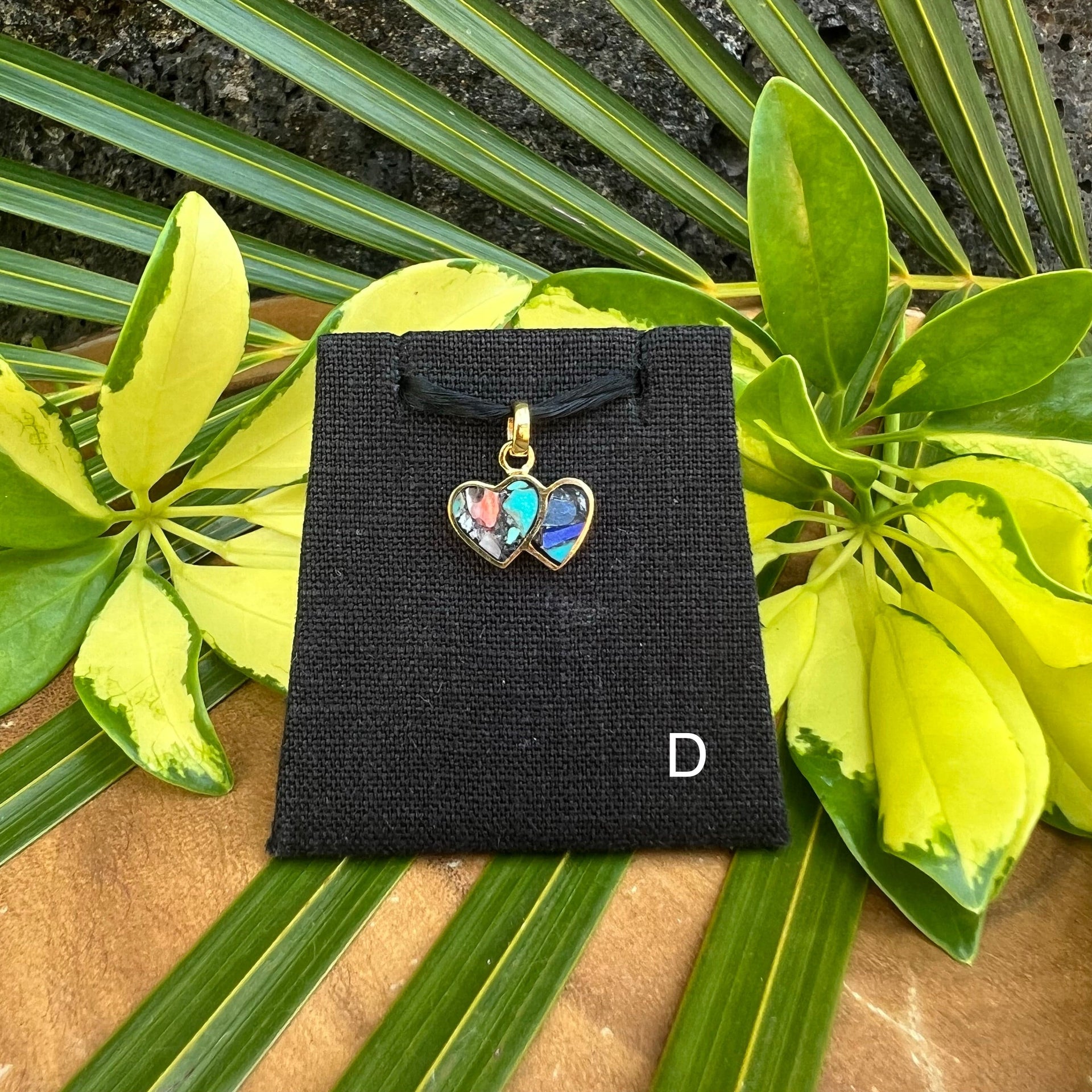 14kt Gold Plated Lālani Black Coral Composite Double Heart Pendant