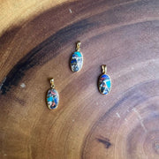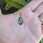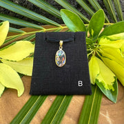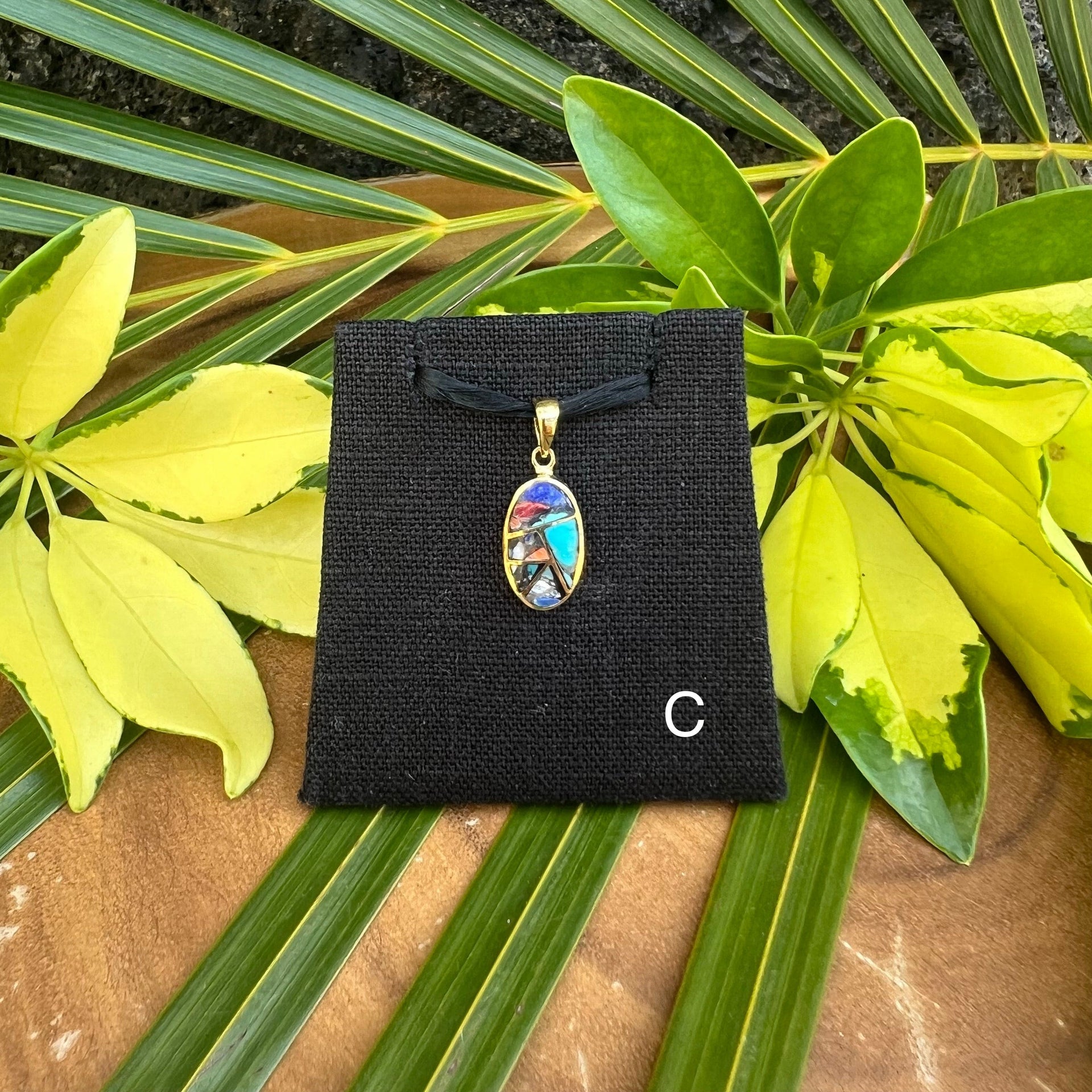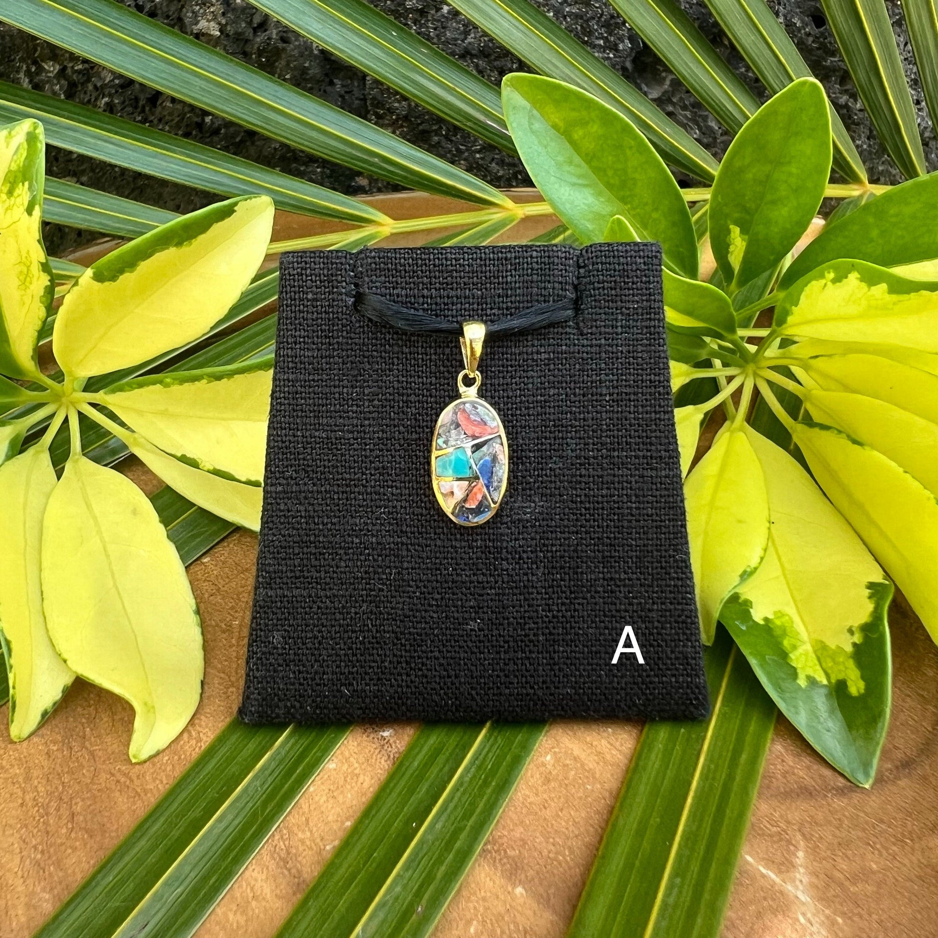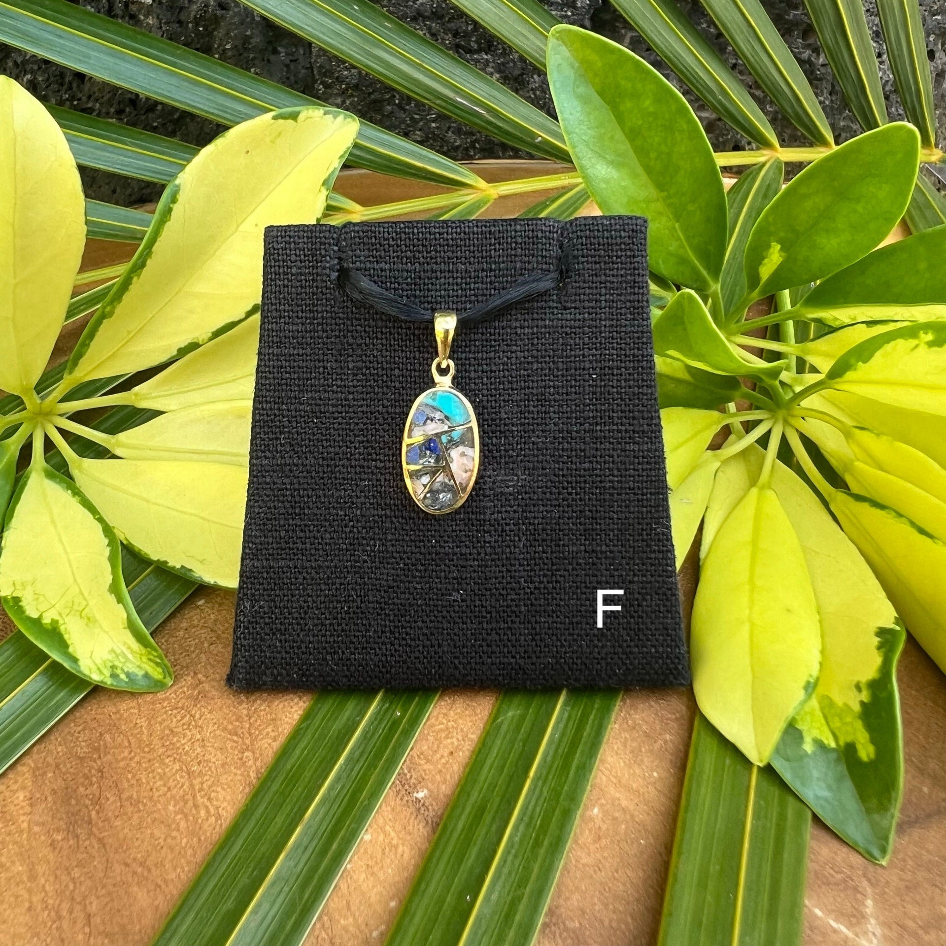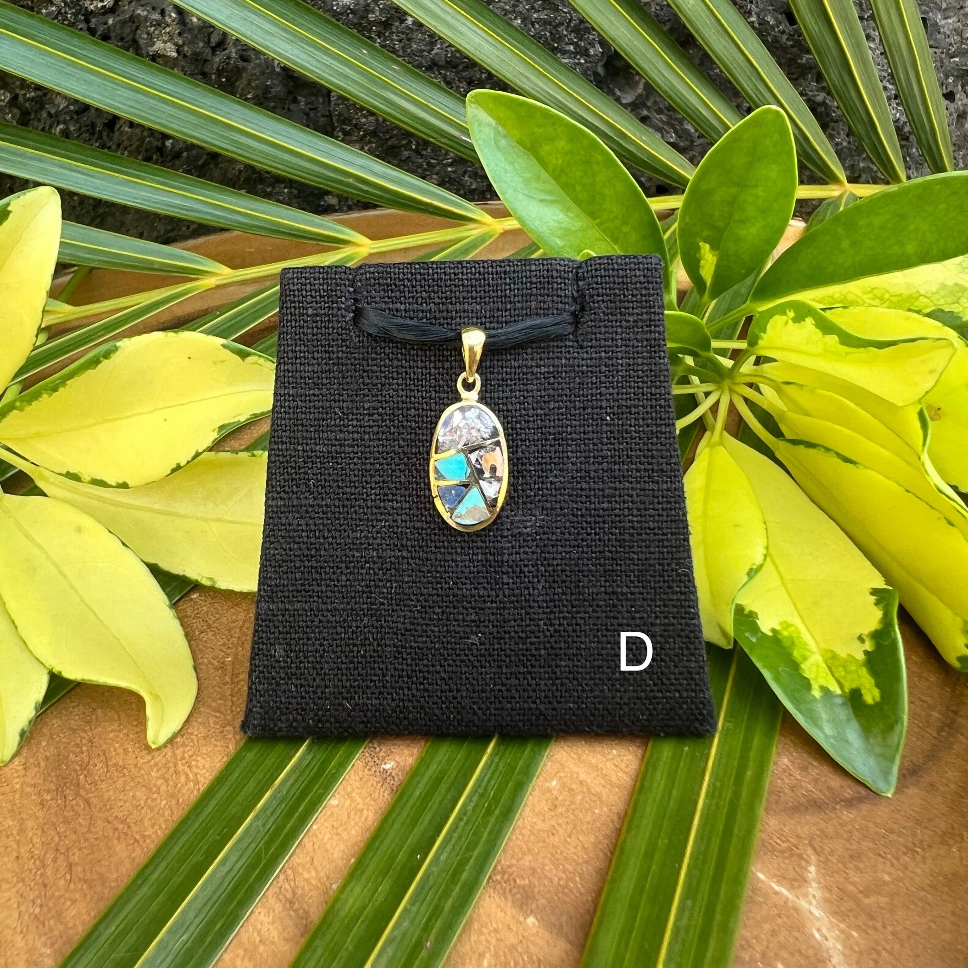 14kt Gold Plated Lālani Black Coral Composite Oval Pendant- Grid Inlay