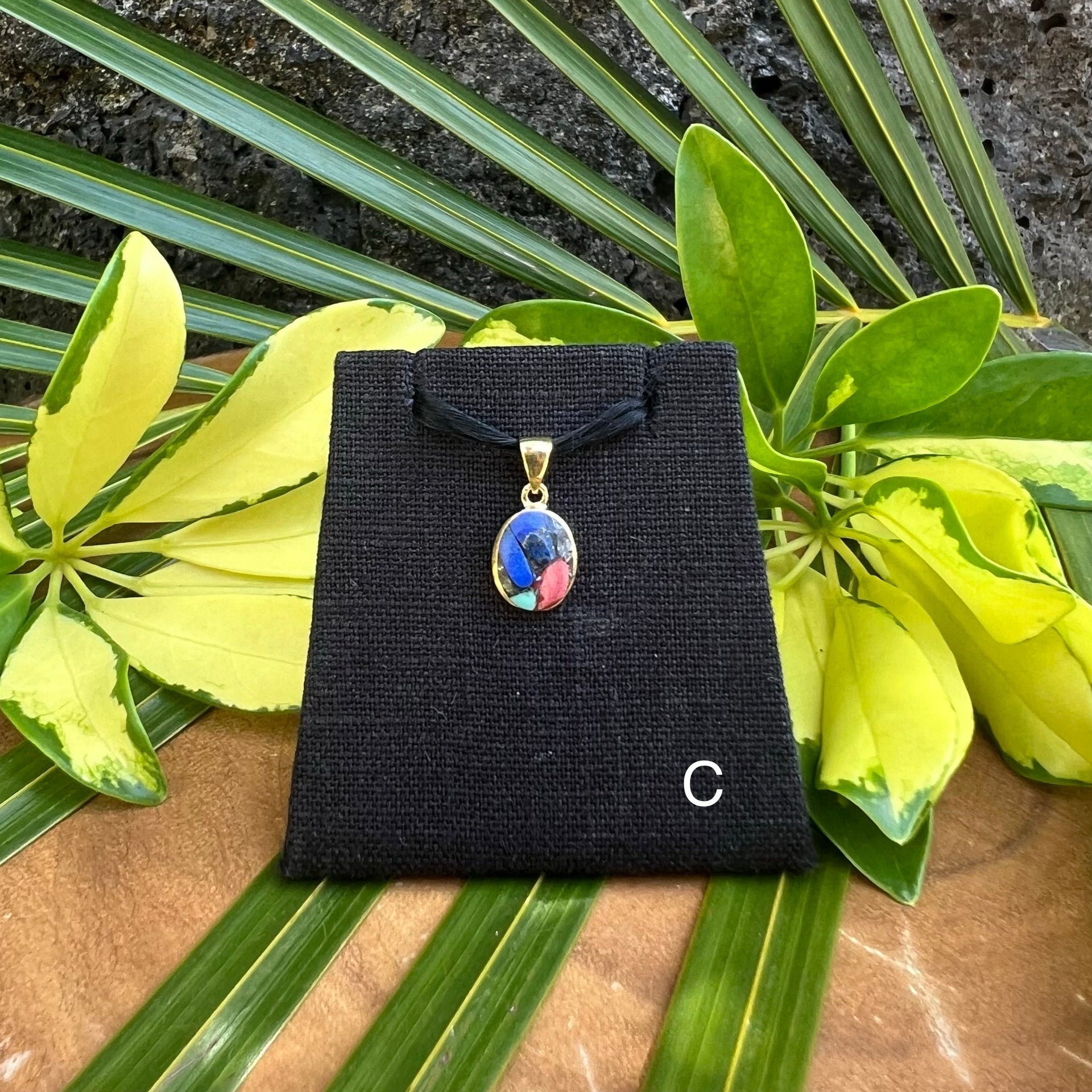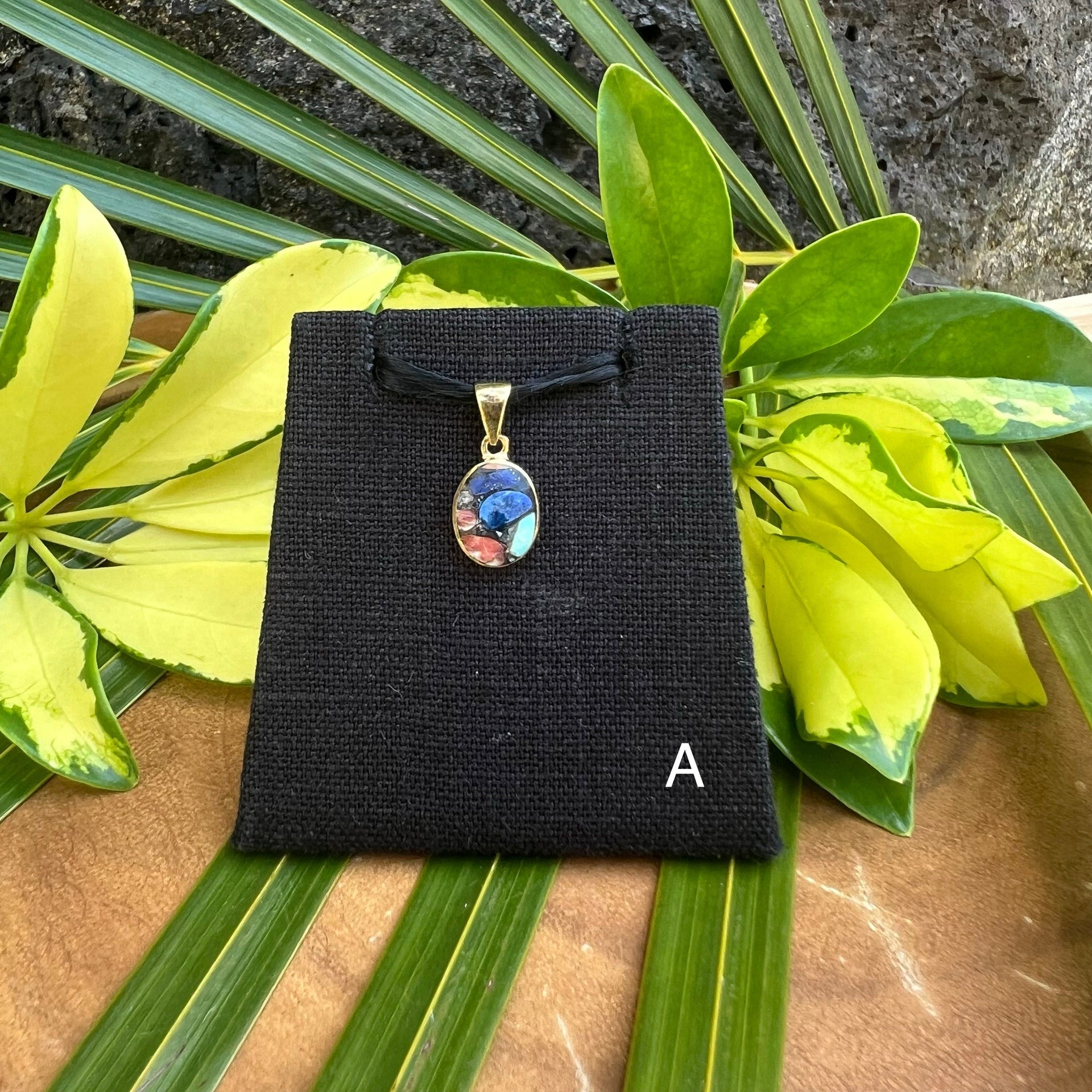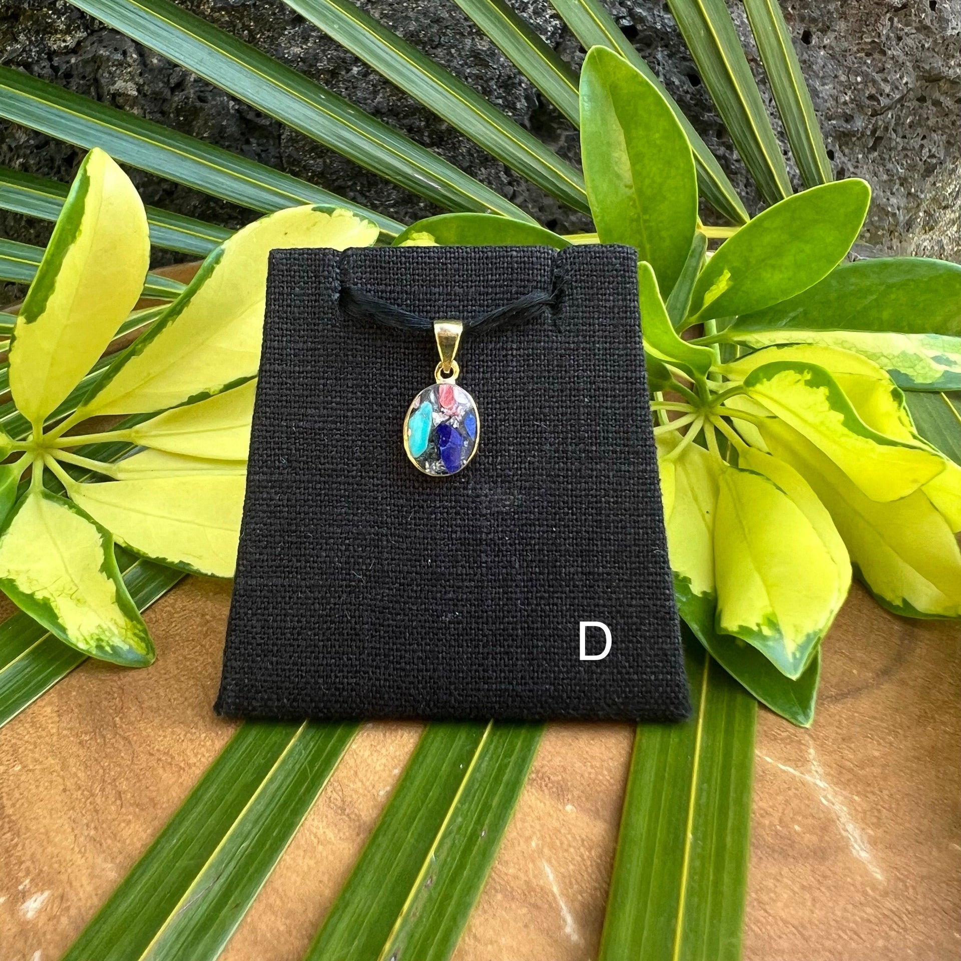 14kt Gold Plated Lālani Black Coral Composite Oval Pendant- Small