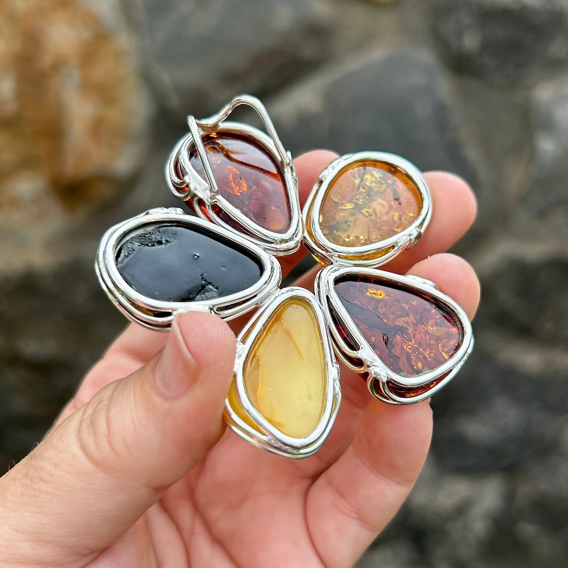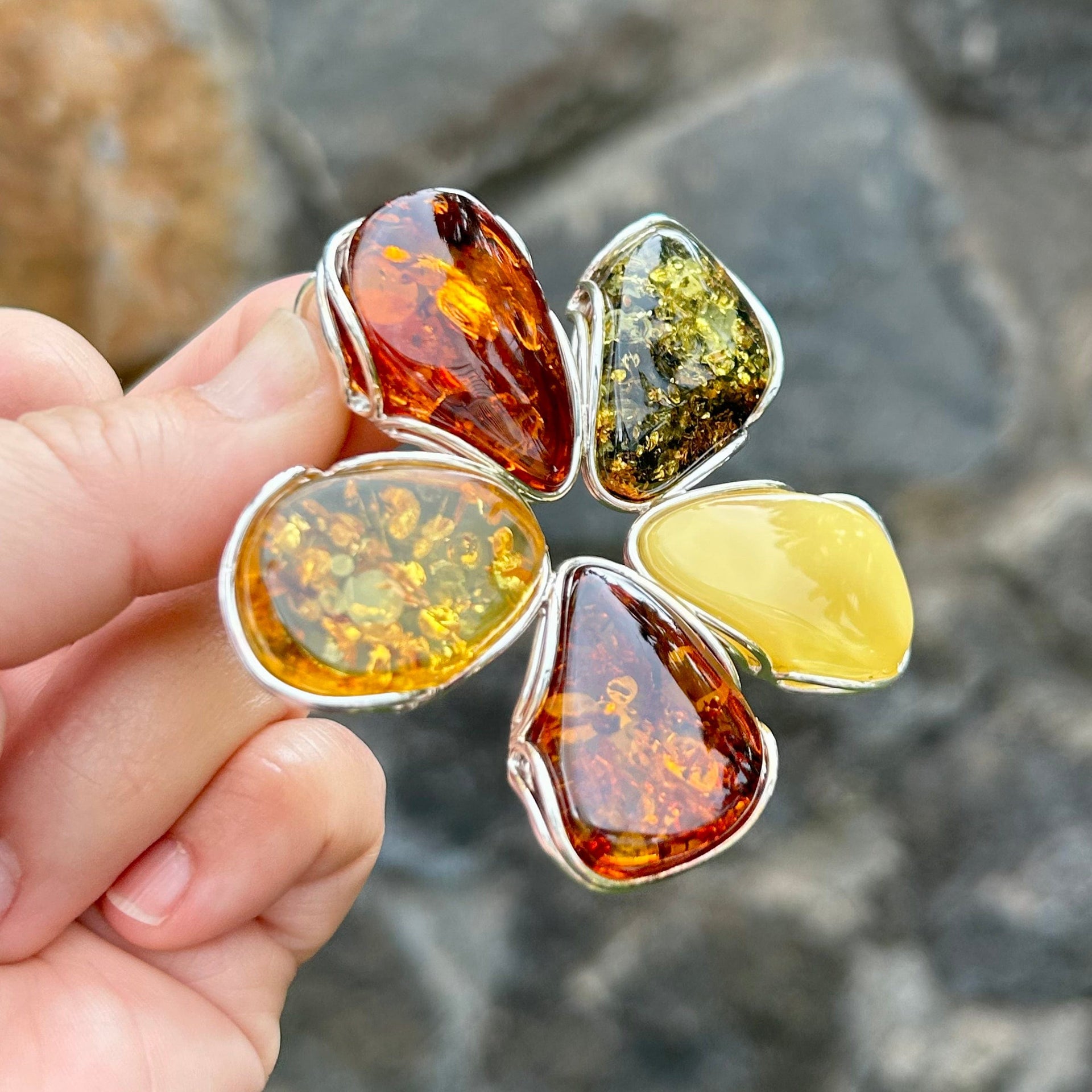 Add a touch of natural history, and healing, to your jewelry collection with Whaler's Locker's multi-colored flower statement piece pendant. Baltic amber is made of tree resin of pine trees that has been fossilized over millions of years. Out of several deposits of amber around the world Baltic amber is often considered the finest of the ambers. It ages around 40 million years old.