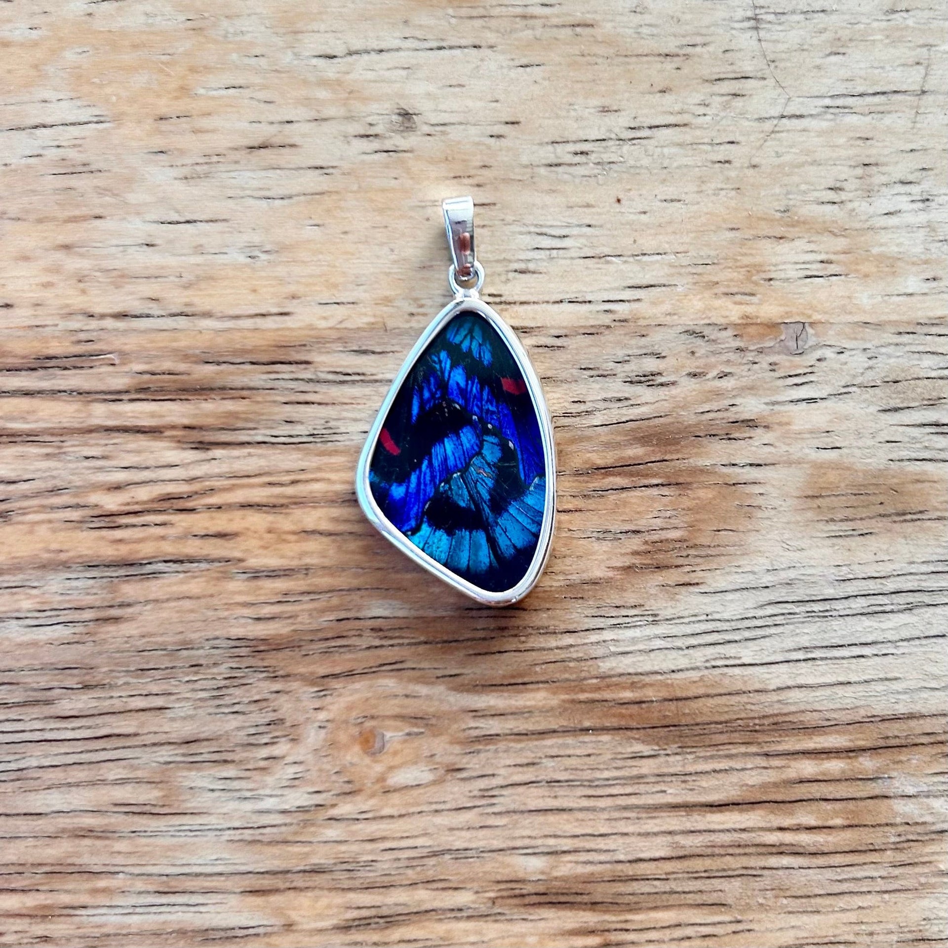 This beautiful wing style pendant is made with real butterfly wings set in high quality acrylic and sterling silver. Because these are made with natural wings, each piece is unique, and may have some color variations that differ slightly from the pictures. This style comes in eight different wing colors.