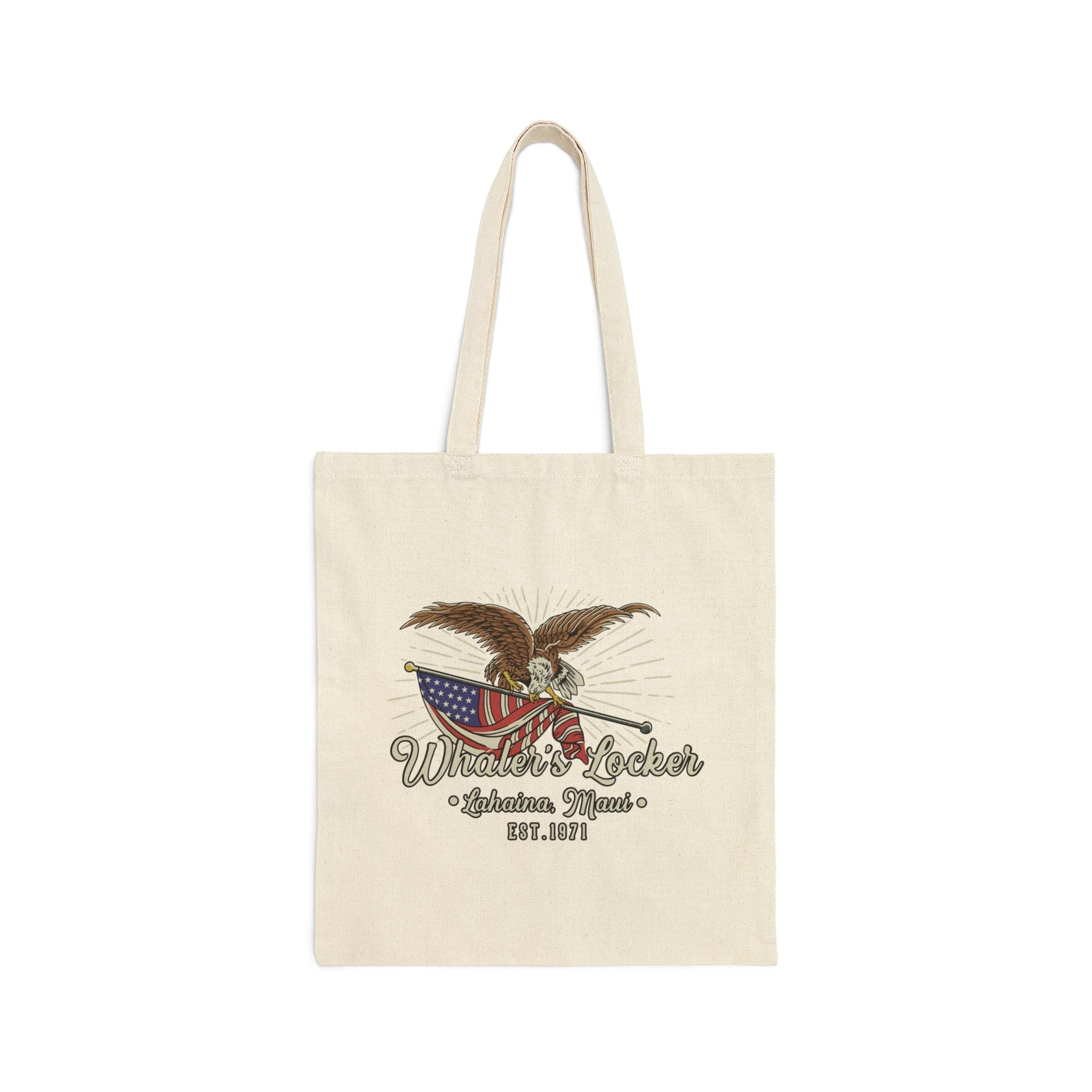 Represent your favorite shop with this super cool Whaler's Locker eagle tote bag! This 100% cotton bag measures 15" x 16"– perfect for everyday shopping. While the canvas is durable and will last for years. The bag features 20" handles (made from the same canvas), making it easy to carry even with a week's worth of shopping.