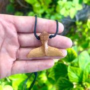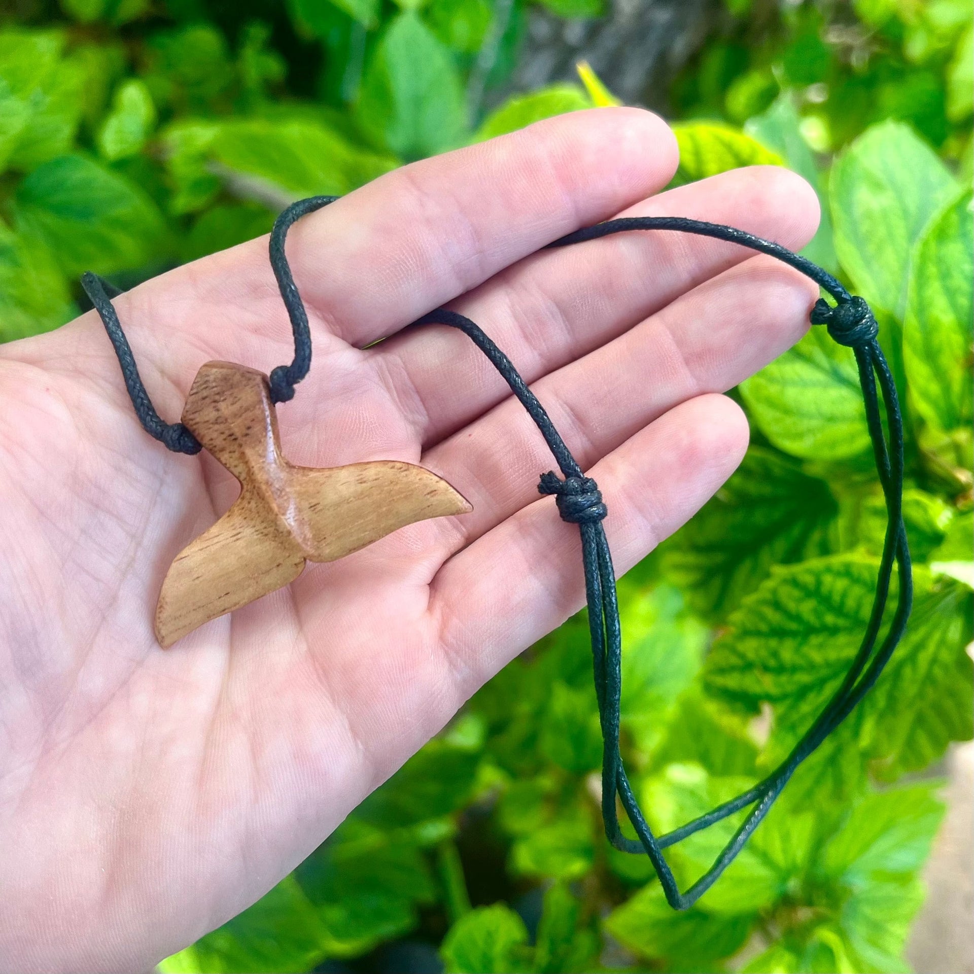 If you love whales you’ll love Maui artist David Haake‘s beautiful, hand carved native koa wood whale tail necklace. This tail measures approximately 1” tall and 1 1/8” wide. The whale tail comes on a fully adjustable cotton cord with a maximum length of 24”.