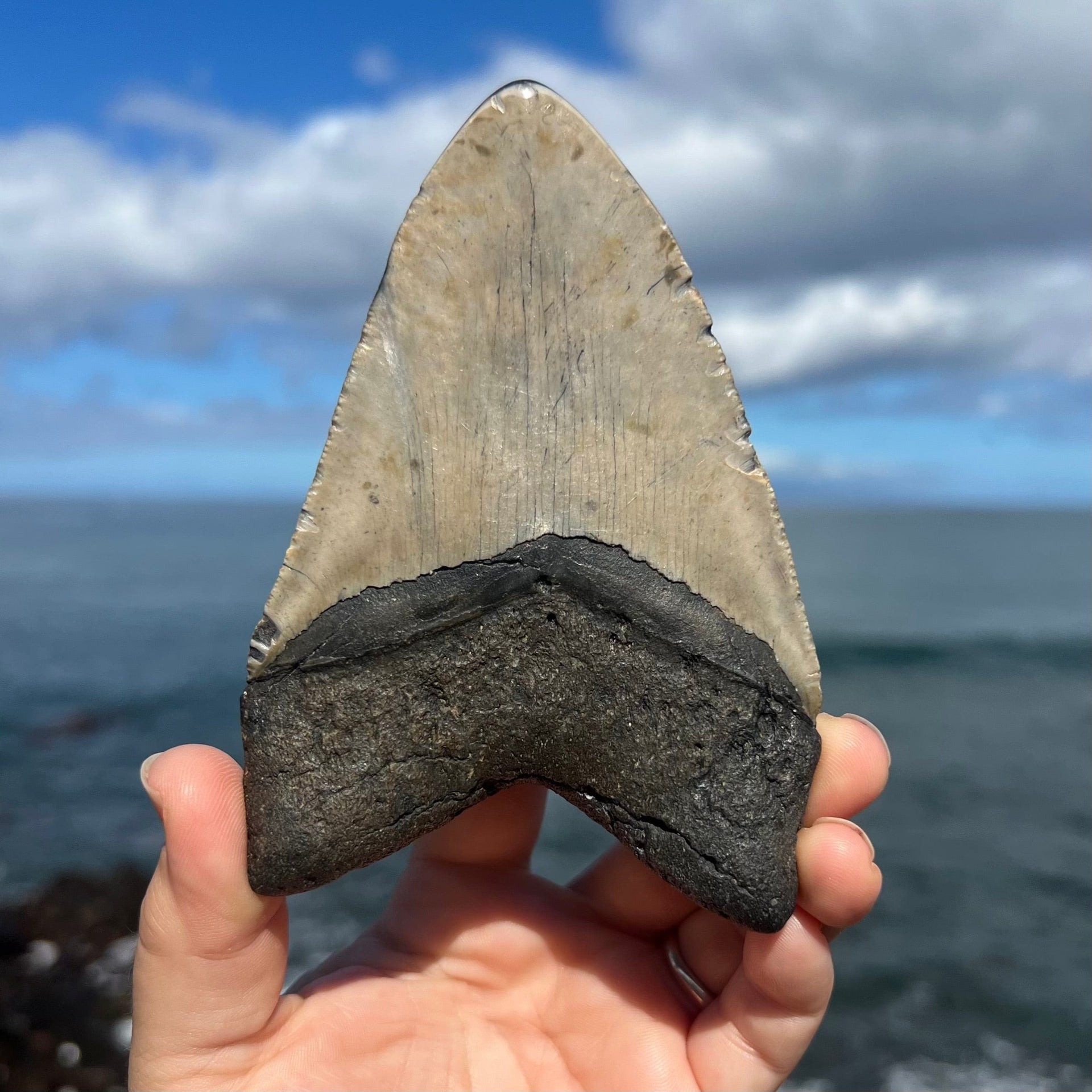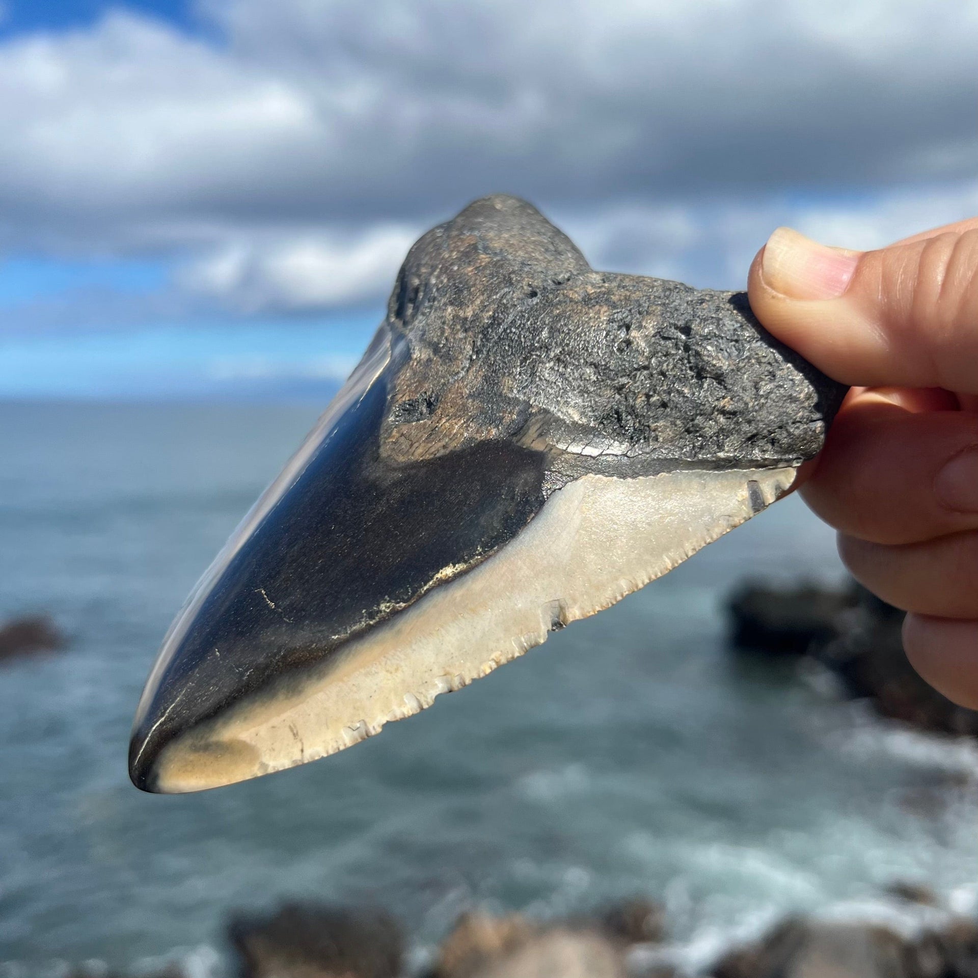 Although the Otodus megalodon lived more than 10 million years ago, reminders of this extinct species of shark remain today. This megalodon tooth is a perfect choice if you're looking for a smaller fossil for your desk or beginning your megalodon collection. The word megalodon means "big tooth," and Whaler's Locker prides itself with offering you a wide assortment.