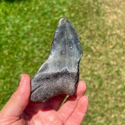 This partial megalodon tooth measures 4 1/4” from the corner of the root to the tip of the tooth on the intact edge. It has a matte black root with an earthy crown. A great tooth for the budding fossil collector!