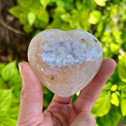 You will receive the exact flower agate heart pictured. The heart measures approximately 2 5/8” x 2 1/2” and is about 1” thick.