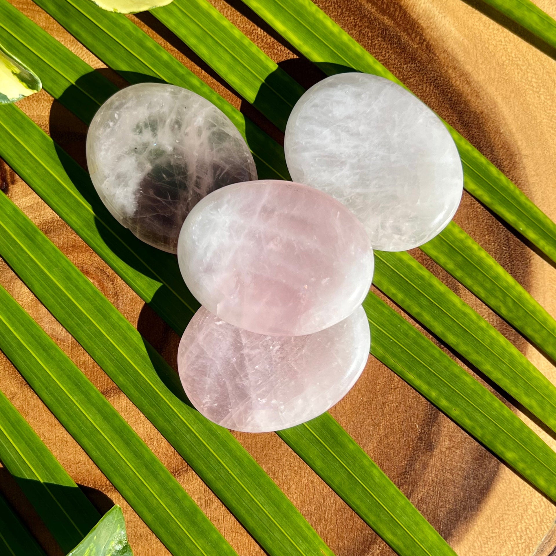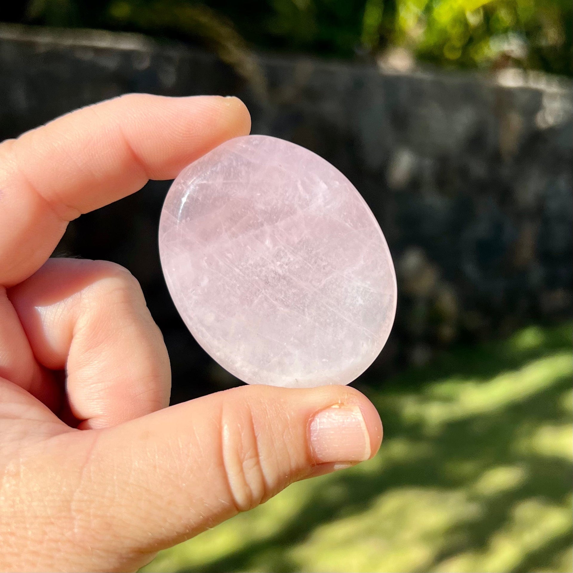 You will receive one rose quartz worry stone picked lovingly at random. Measures approximately 2" x 1 1/2".  Due to the natural variations of the rose quartz crystal, each worry stone will have its own unique characteristics.