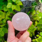 Bring home some peace of mind and love with our lovey Polished Rose Quartz Sphere. With a soft, rosy hue this piece measures approximately 2 1/4” across.