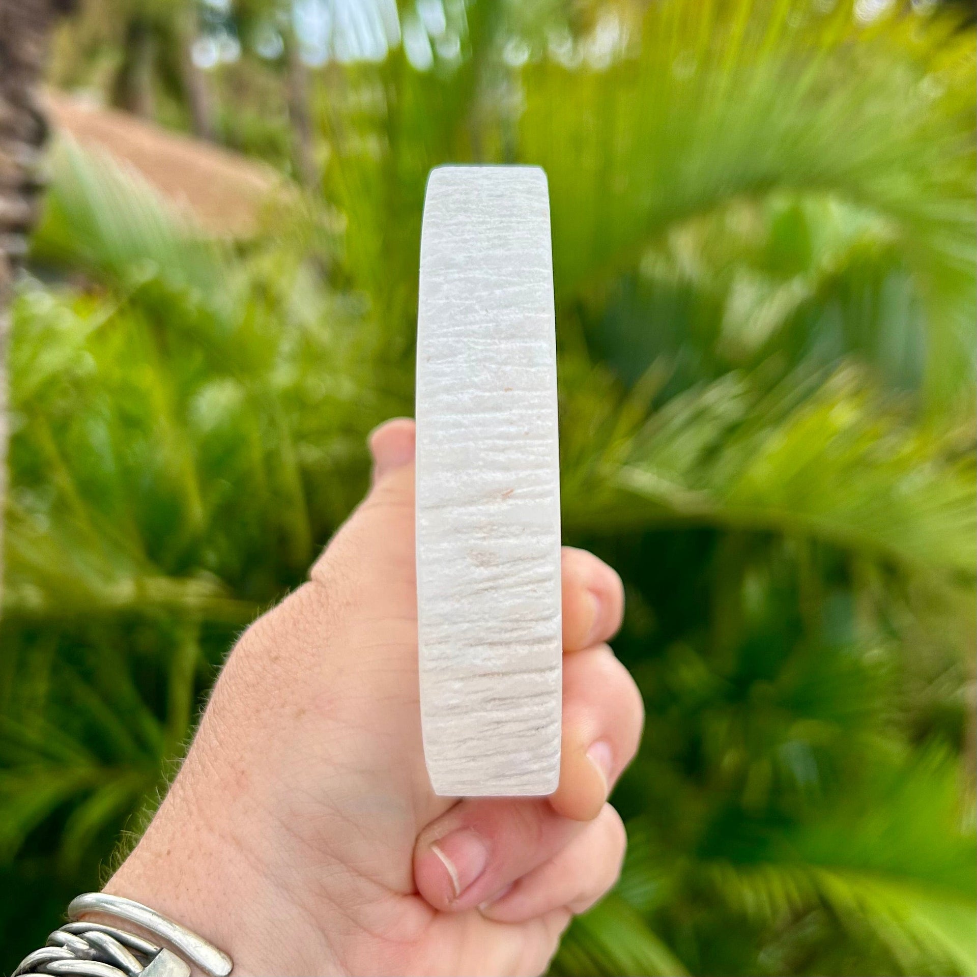 You will receive one selenite slab lovingly picked at random. You will receive a slab similar to the one pictured. Due to natural variations in the selenite, each slab is unique.
