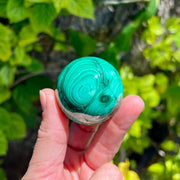 You will receive the exact Malachite Sphere pictured. The sphere measures 1 3/4” across and comes with a small acrylic ring stand.