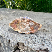 Whaler's locker's Polished Petrified Wood Slice displays a high polished facade that reveals stunning colors and patterns unique to this piece. It measures approximately 2" long, 1 1/4" wide and 2" tall.