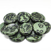 Kambaba Jasper, known for its mesmerizing deep green and black swirling patterns, is a stone of tranquility, grounding, and ancient wisdom. Often called the "Stone of Peace," it is believed to calm emotional turbulence, reduce stress, and encourage a sense of balance. This unique stone connects deeply to nature's energy, promoting spiritual growth and harmony. Its grounding properties are said to aid in overcoming fears and doubts, fostering confidence and a sense of stability. Kambaba Jasper is also thought to awaken the heart chakra, opening the pathways to unconditional love, compassion, and emotional healing.