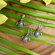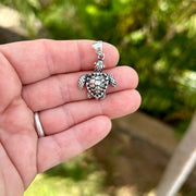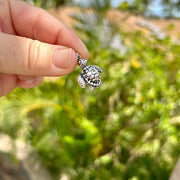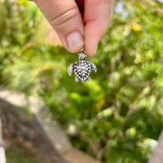 Our Darling Sea Turtle Pendant features a realistic design across the shell and fins of the turtle. The pendant is cast in high quality .925 sterling silver and measures approximately 1 1/4" from the top of the bale to the bottom of the charm. I