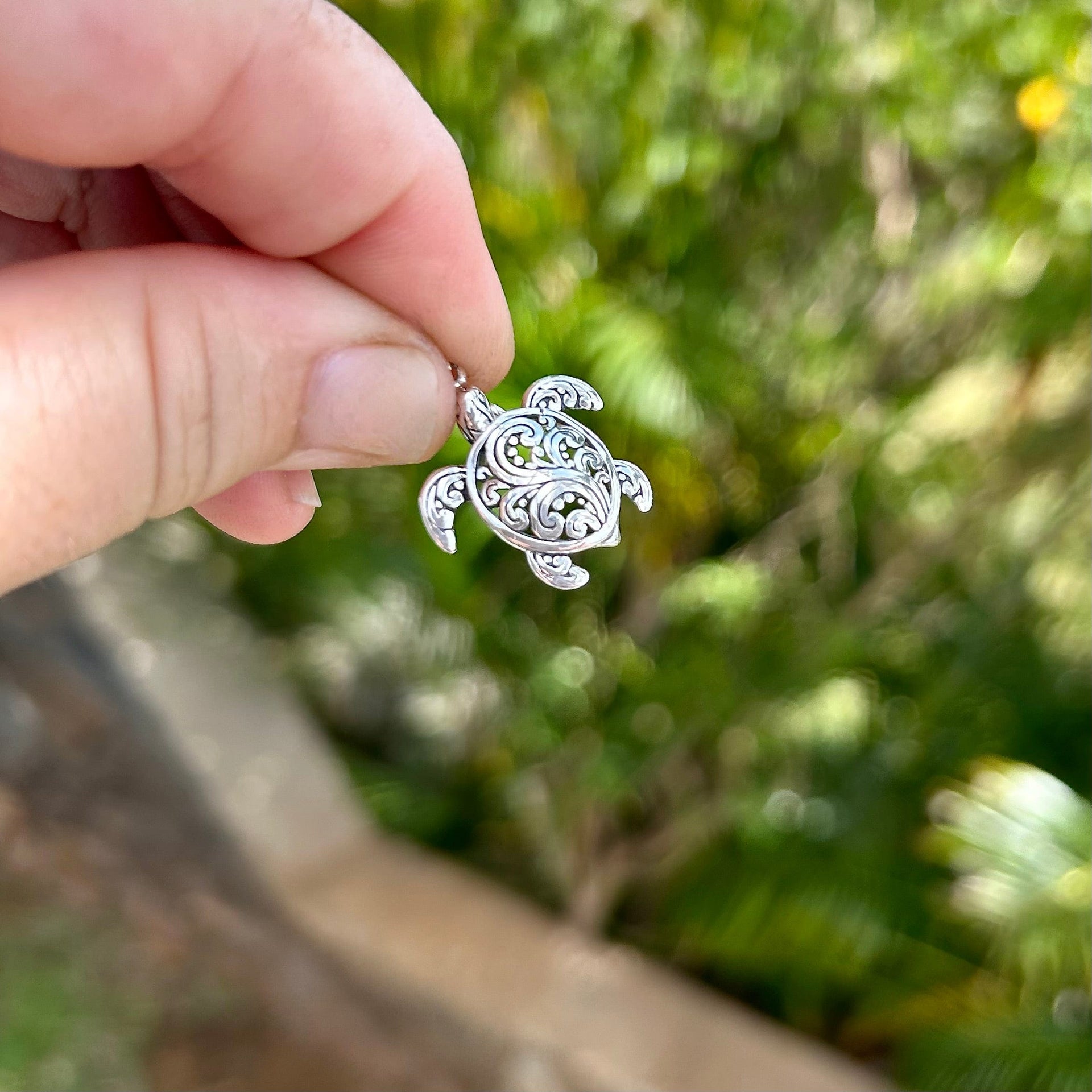 Our elegant Filigree Sea Turtle Earrings feature a delicate design across the shell and fins of the turtle. The earrings are cast in high quality .925 sterling silver and measure approximately 1 3/8" from the top of the French hook to the bottom of the charm.