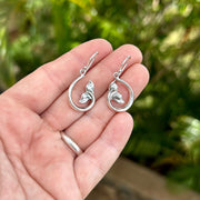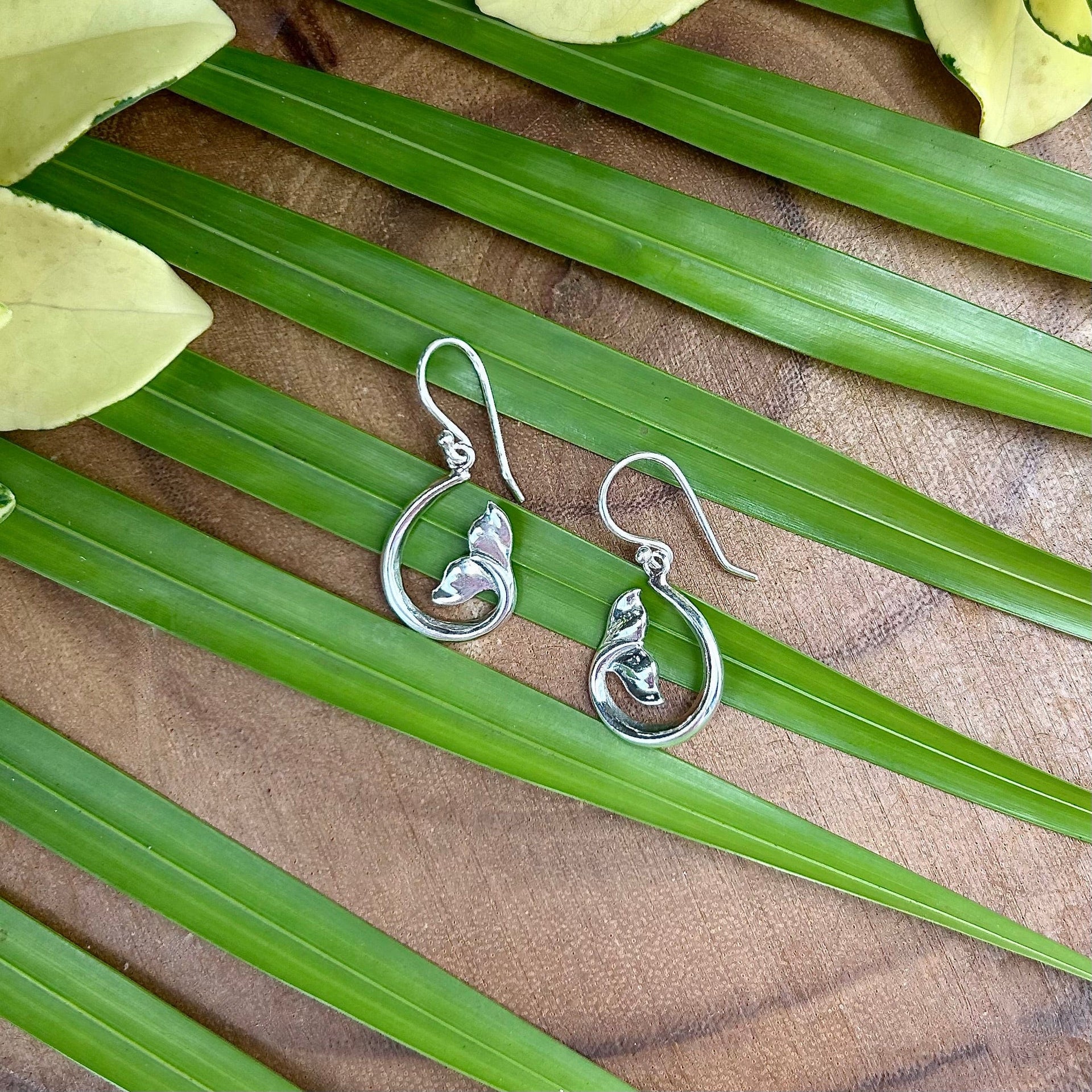 Take bit of whale energy with you everywhere you go with our Swirling Whale Tail Earrings. The earrings are cast in high quality .925 sterling silver and measure approximately 1" from the top of the French hook to the bottom of the charm.
