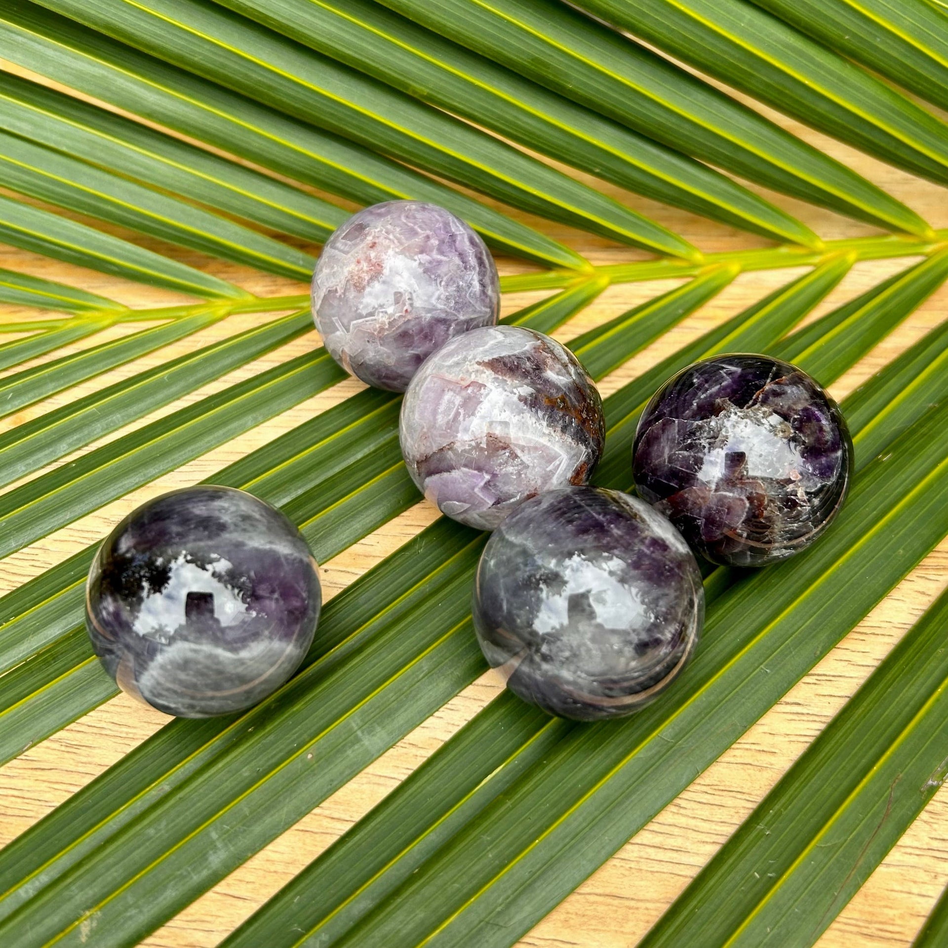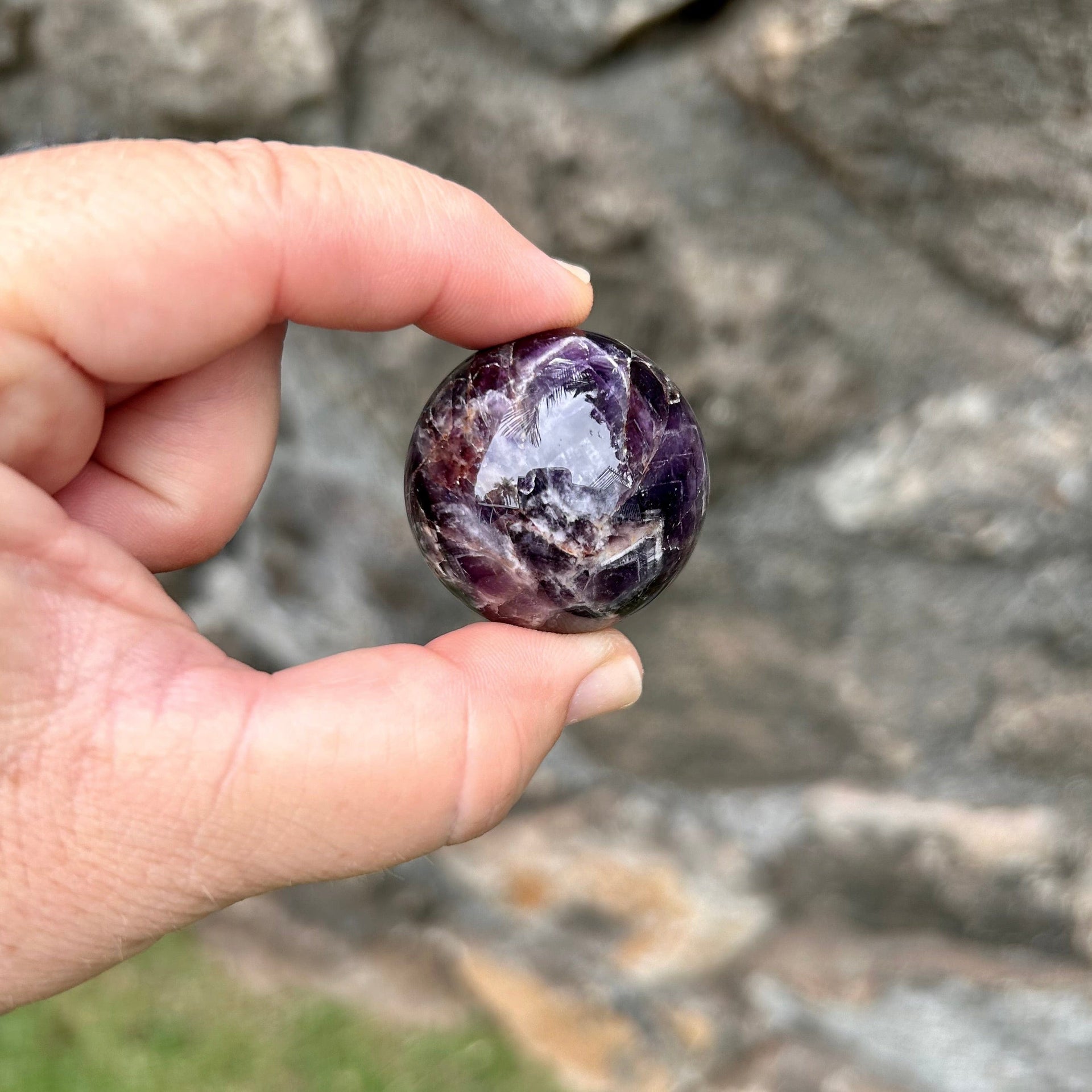Sooth your anxiety away with one of our Chevron Amethyst Spheres. Perfect to keep in a pocket measuring approximately 1 1/4" in diameter.