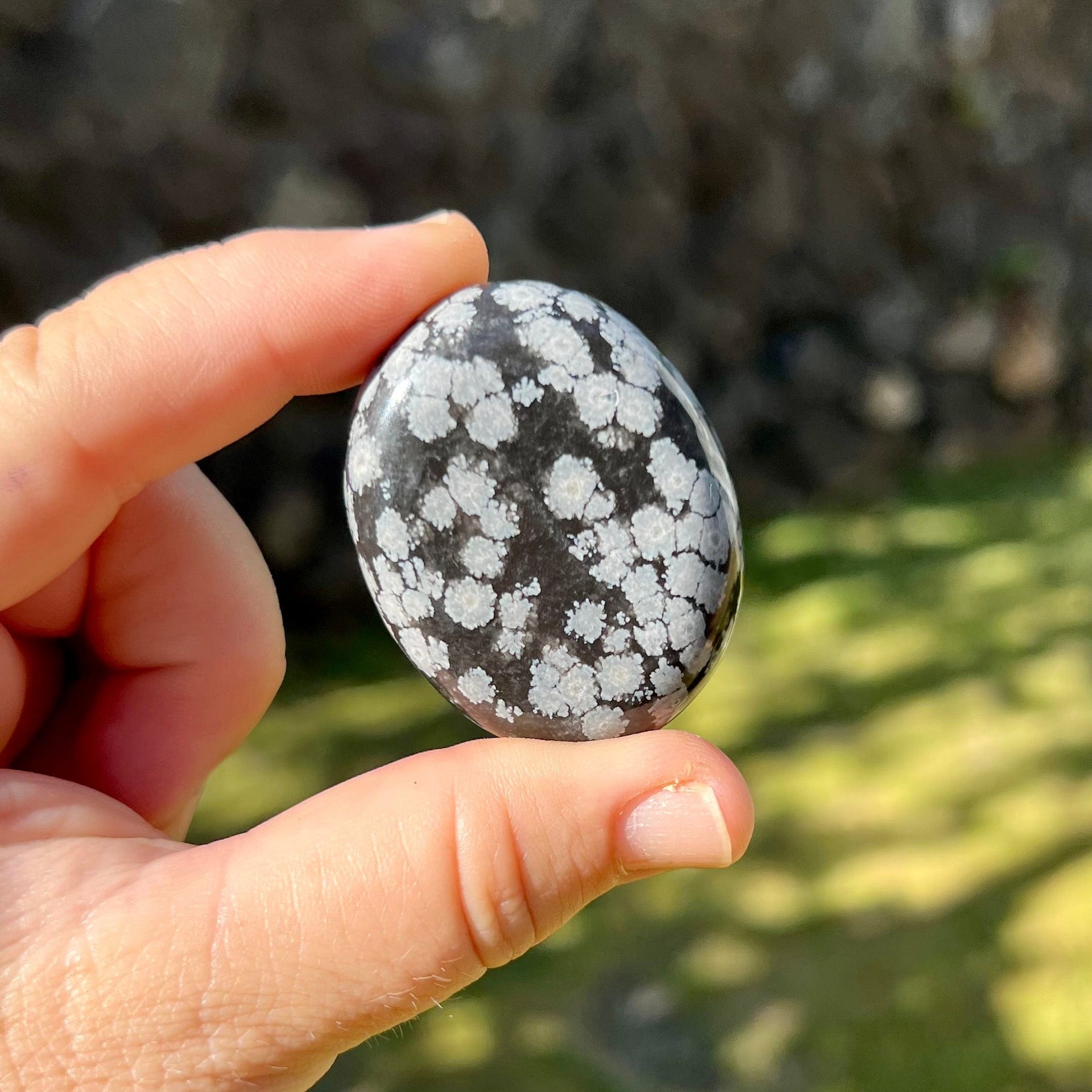 You will receive one snowflake obsidian pillow picked lovingly at random. Measures approximately 1 3/4” x 1 1/4" x 1/2”. Due to the natural variations of the obsidian, each pillow will have its own unique characteristics.