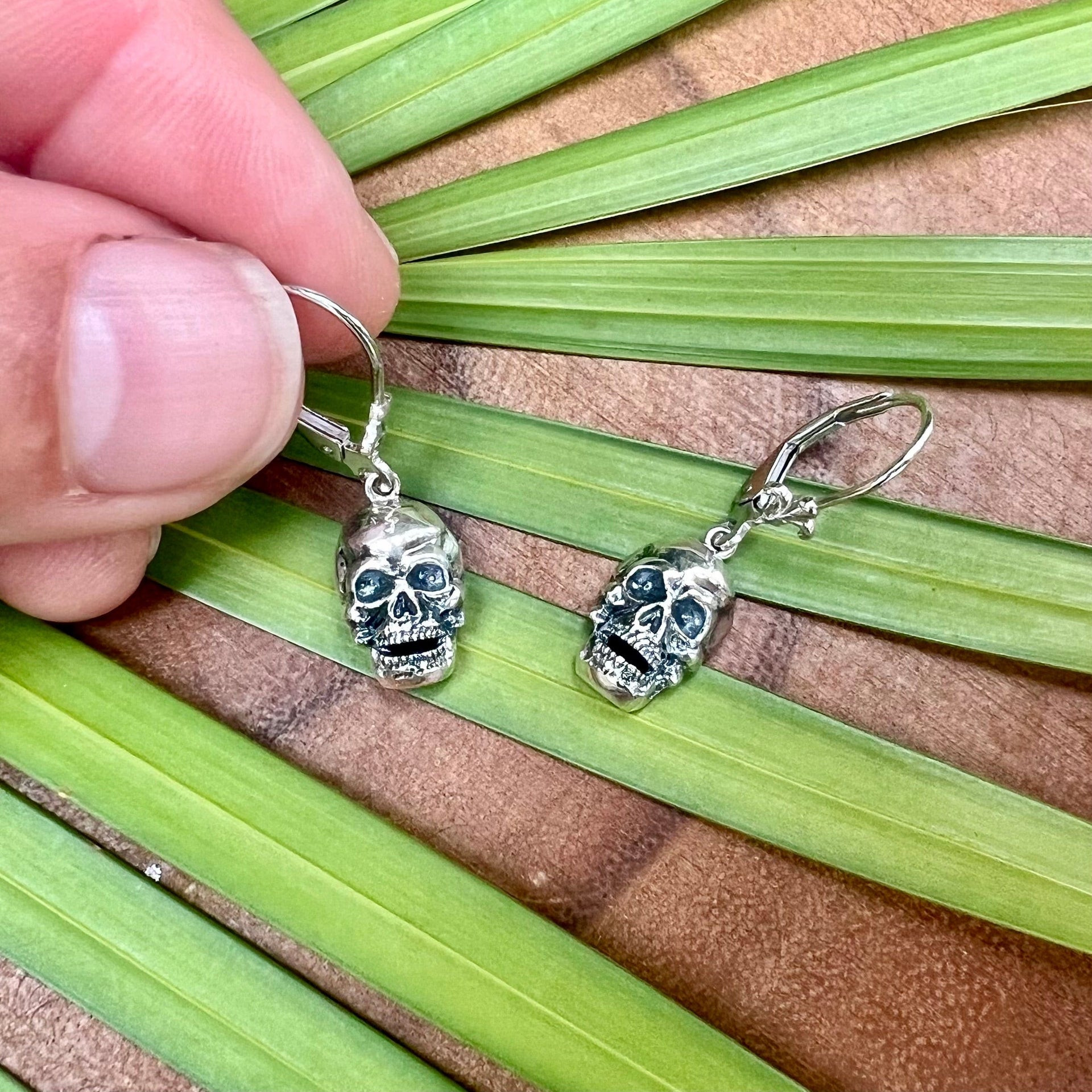 Whaler's Locker's Skull Drop Earring's are .925 sterling silver. The skulls dangle from a lock-back style clasp. The earrings measure approximately 1 1/8" in total length with a width of 3/8". Whaler's Locker loves skulls in all shapes, styles and materials. Check out our awesome collection of hand-carved gemstone skulls, pendants and rings.